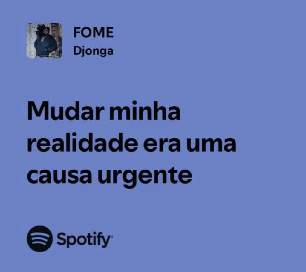 “Tem hora que é.. falta espaço pro tanto de coisa que eu quero. A fome ela vem de lugares diferentes na minha vida de um modo geral, então em algum momento, a fome é aquela parada da.. daquele luxo que você quer ter… aí depois a fome é da roupa.. depois vai pra algo mais espiritual, de conhecimento, de pra onde eu quero ir… e eu acho que hoje em dia a fome maior que eu tenho é de entender mesmo o porque eu tenho tanta fome, entendeu. É o que eu falo no disco né, sou movido a dúvidas e não a respostas”.”-Djonga.