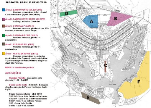 Lúcio Costa identificou, entre esses problemas, a expulsão não prevista das classes mais baixas para a periferia do Distrito Federal, bem como o sucateamento e a ineficiência do sistema de transporte público. Ele destacou, em especial, o mau planejamento das rotas de ônibus e a ausência de um sistema de integração tarifária, que obrigava – e ainda obriga – o passageiro a pagar mais de uma passagem em uma única viagem. Com o objetivo de integrar melhor o centro da cidade às populações da classe média, propôs a criação de seis novas áreas habitacionais, que hoje correspondem ao Sudoeste, Noroeste, a uma expansão da Vila Planalto, a uma área próxima ao ParkShopping e à Leroy Merlin, além do Lago Sul e do Lago Norte. As duas primeiras deveriam atender a demanda habitacional da classe média, por meio de um projeto modular de “quadras econômicas”, idealizado pelo arquiteto João Filgueiras Lima, que reduziria os custos de construção e, consequentemente, o valor dos imóveis. A terceira proposta visava reconhecer a importância histórica da Vila Planalto, promovendo sua urbanização e melhoria de infraestrutura. A quarta área foi escolhida por sua proximidade com centros comerciais, especialmente o ParkShopping, e deveria apresentar baixa densidade populacional, integrada à arborização. Atualmente, essa região começa a ser ocupada por condomínios residenciais. Já as áreas próximas aos lagos deveriam também abrigar classes médias e baixas, embora já se observasse, à época, o surgimento de grandes mansões como defendido por Israel Pinheiro.